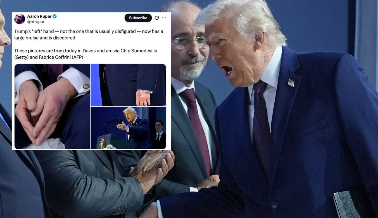 Several images circulating on social media on Thursday show intense bruising on President Donald Trump’s hands as new questions erupt over his health.